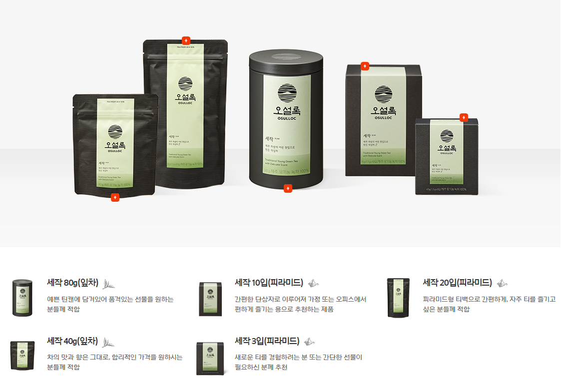 오설록 / (잎차) 세작40g, 80g오설록 / 녹차제품 / 세작 (잎차) 40g, 80g / (티백) 3입, 10입, 20입