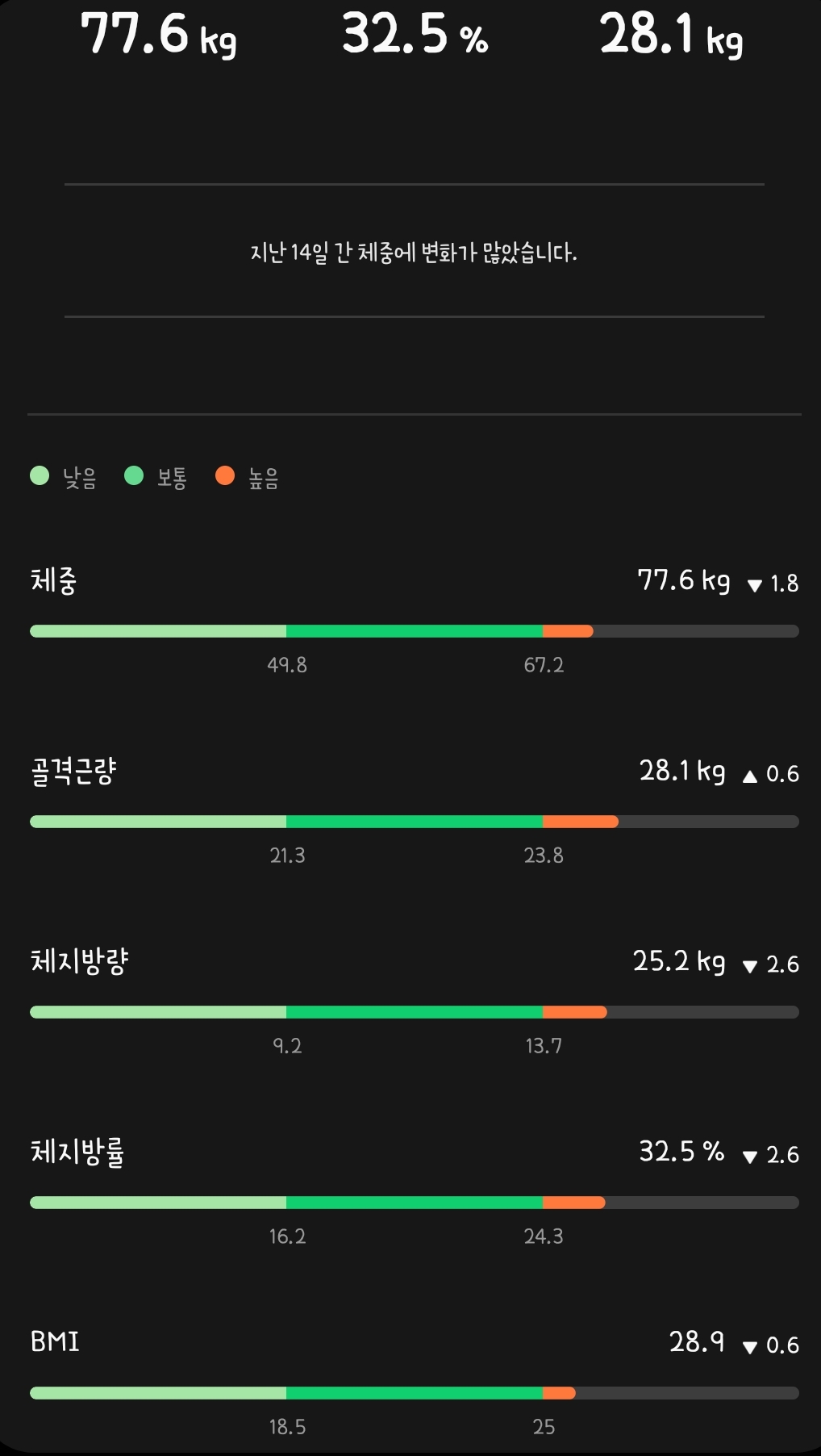 14일간 체중변화가 많았다고 알려주는 갤럭시워치 .. !