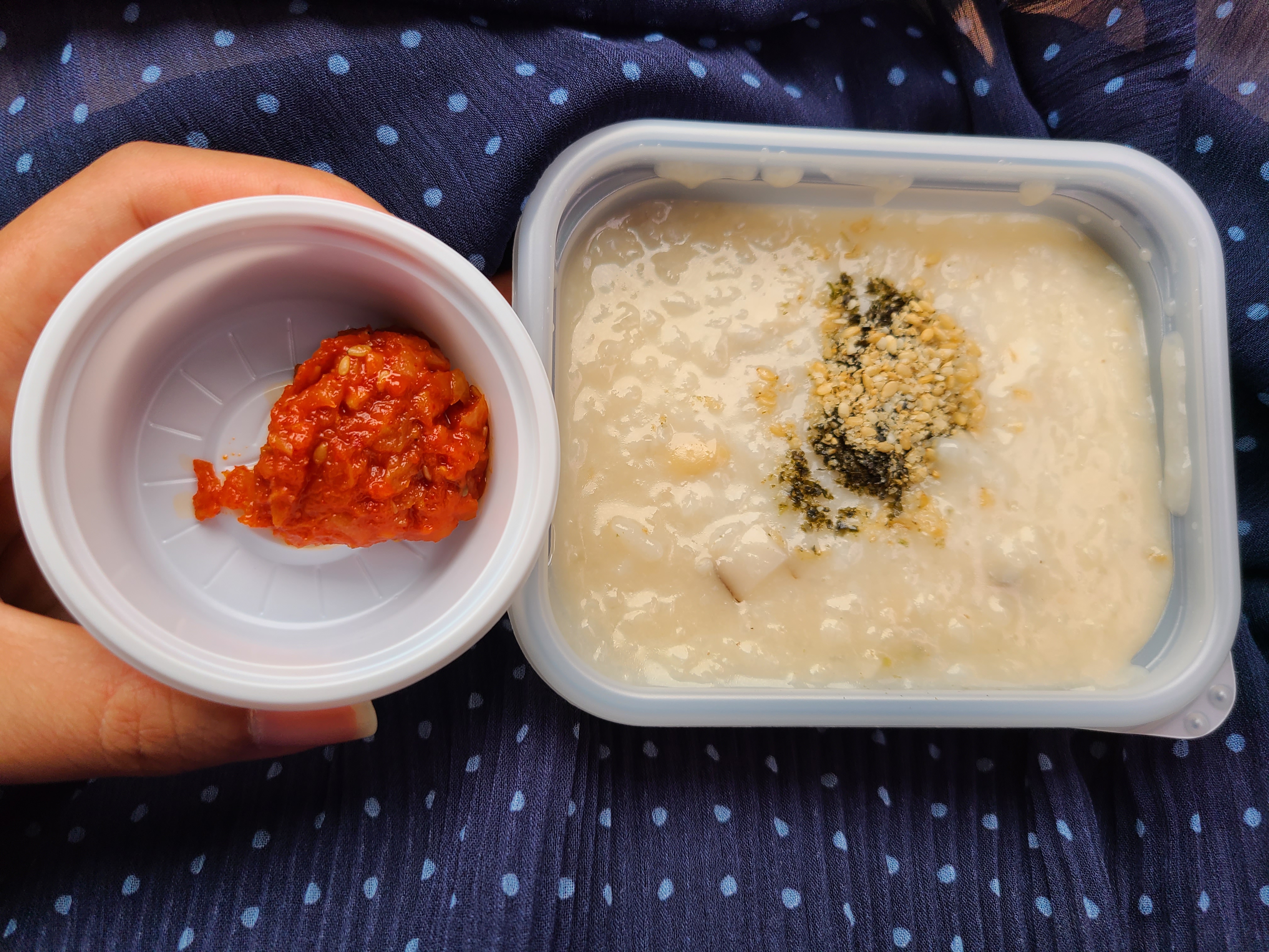 이날은 야외로 나가는 중이라 가는 길에 본죽에서 죽 사먹었다.