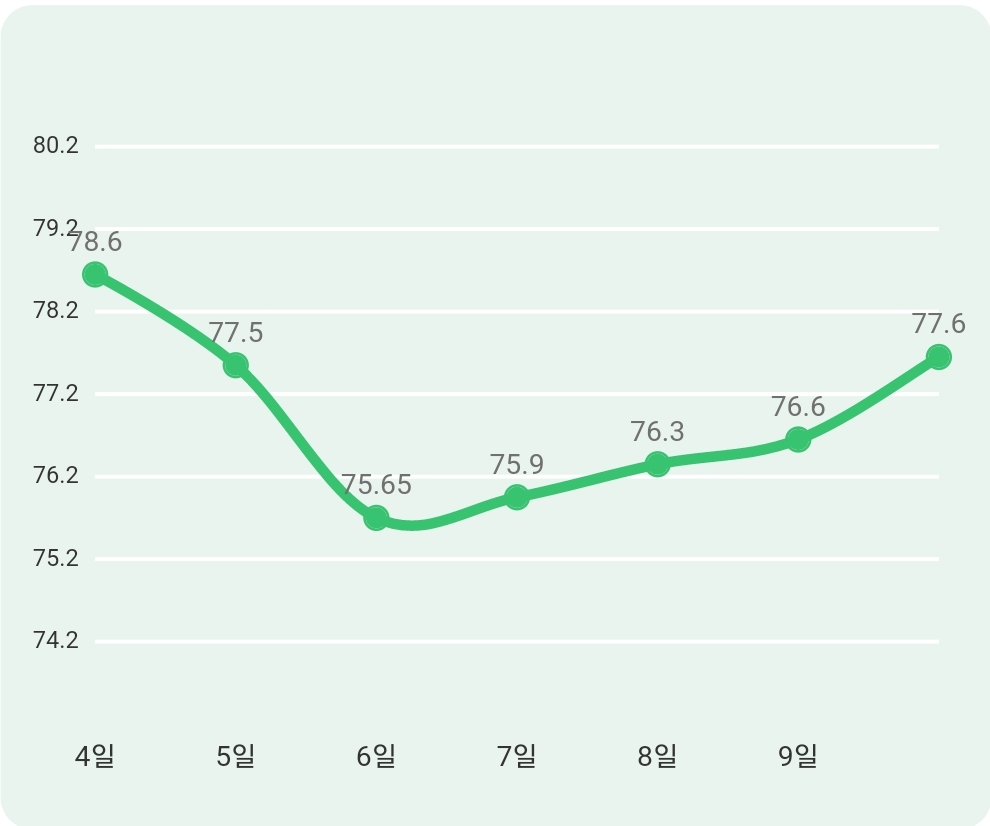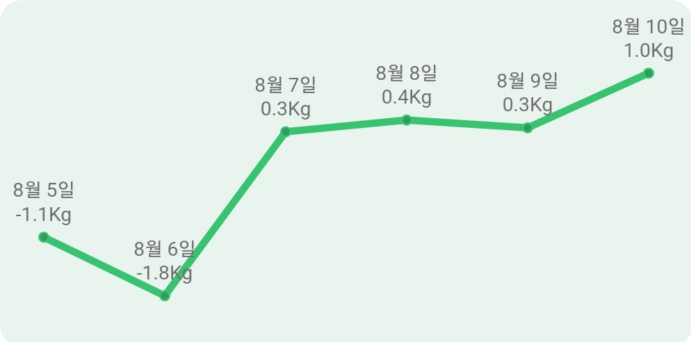보식5일차인 8월10일 아침 몸무게는 77.6kg이었다.