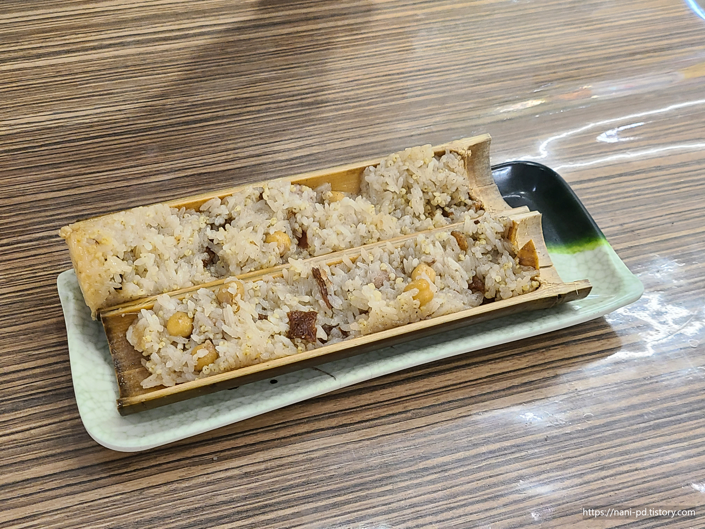 죽통밥은 우리나라의 대나무밥과 동일합니다.