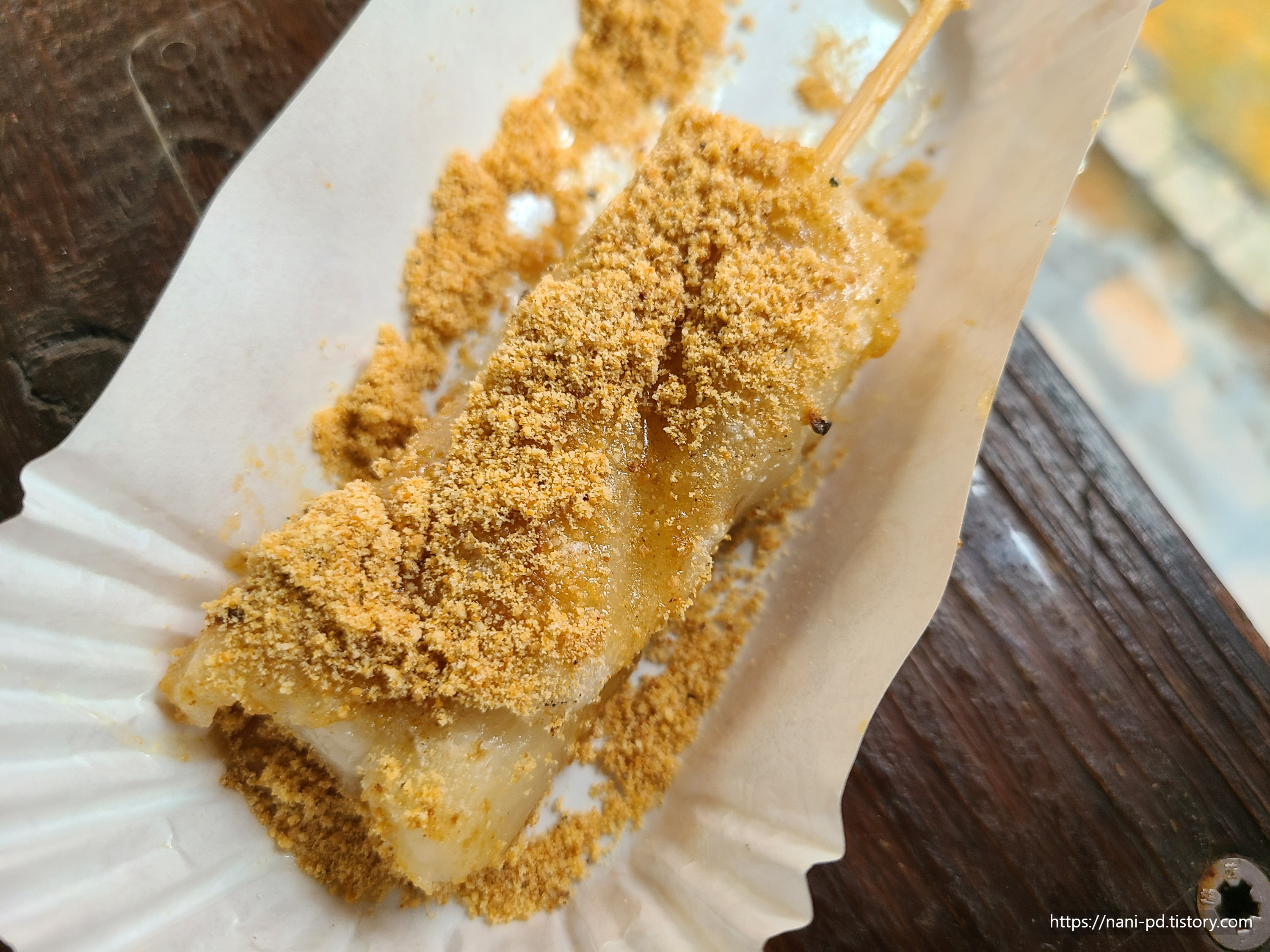 비주얼만 보면 떡꼬치인데 진짜 꼬치에 떡만 꽂아둔 그런 느낌입니다.