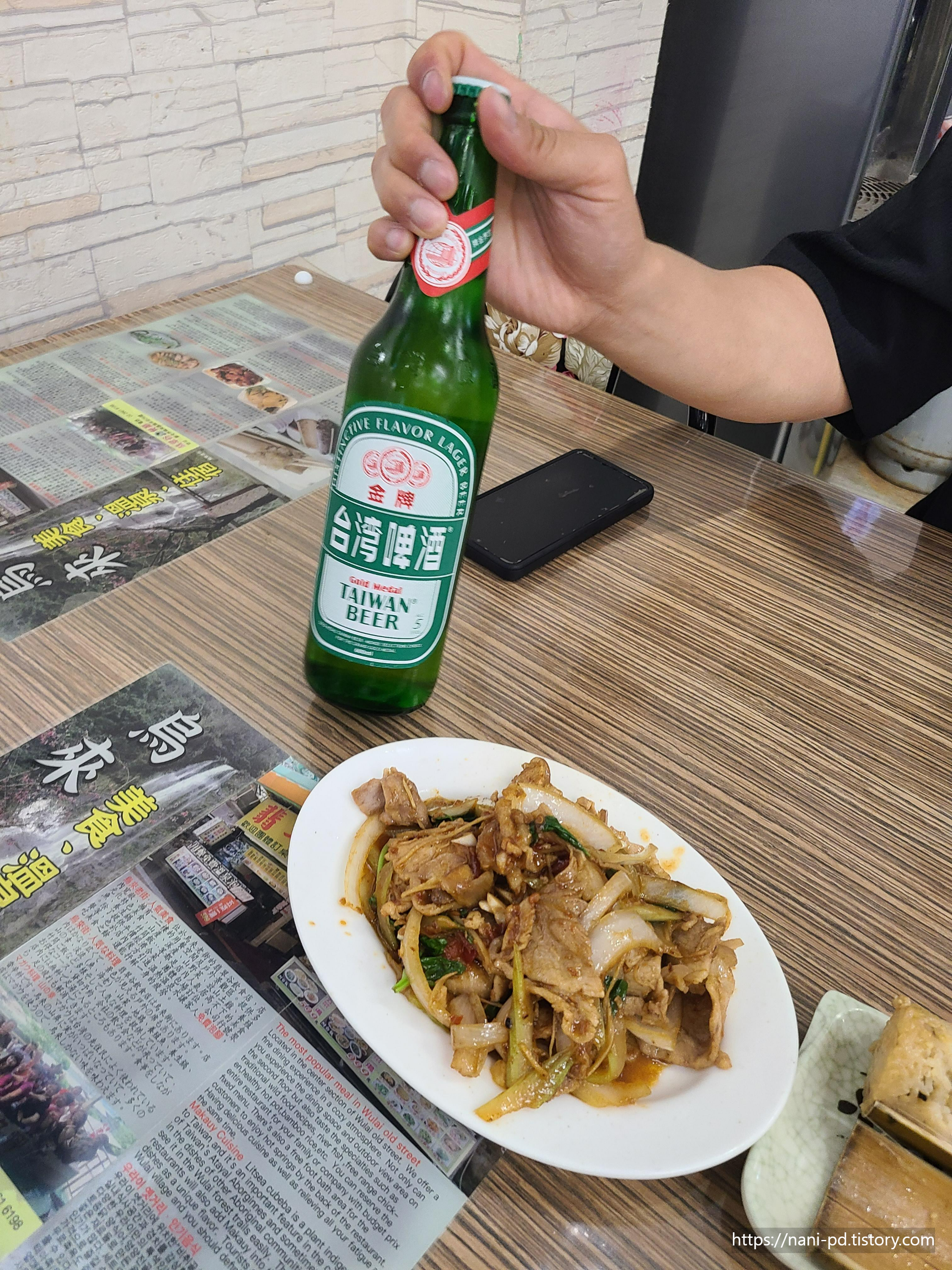 돼지볶음도 나왔는데 한 입먹고 뭔가 맥주가 필요한 맛인듯해 타이완비어를 주문했습니다.