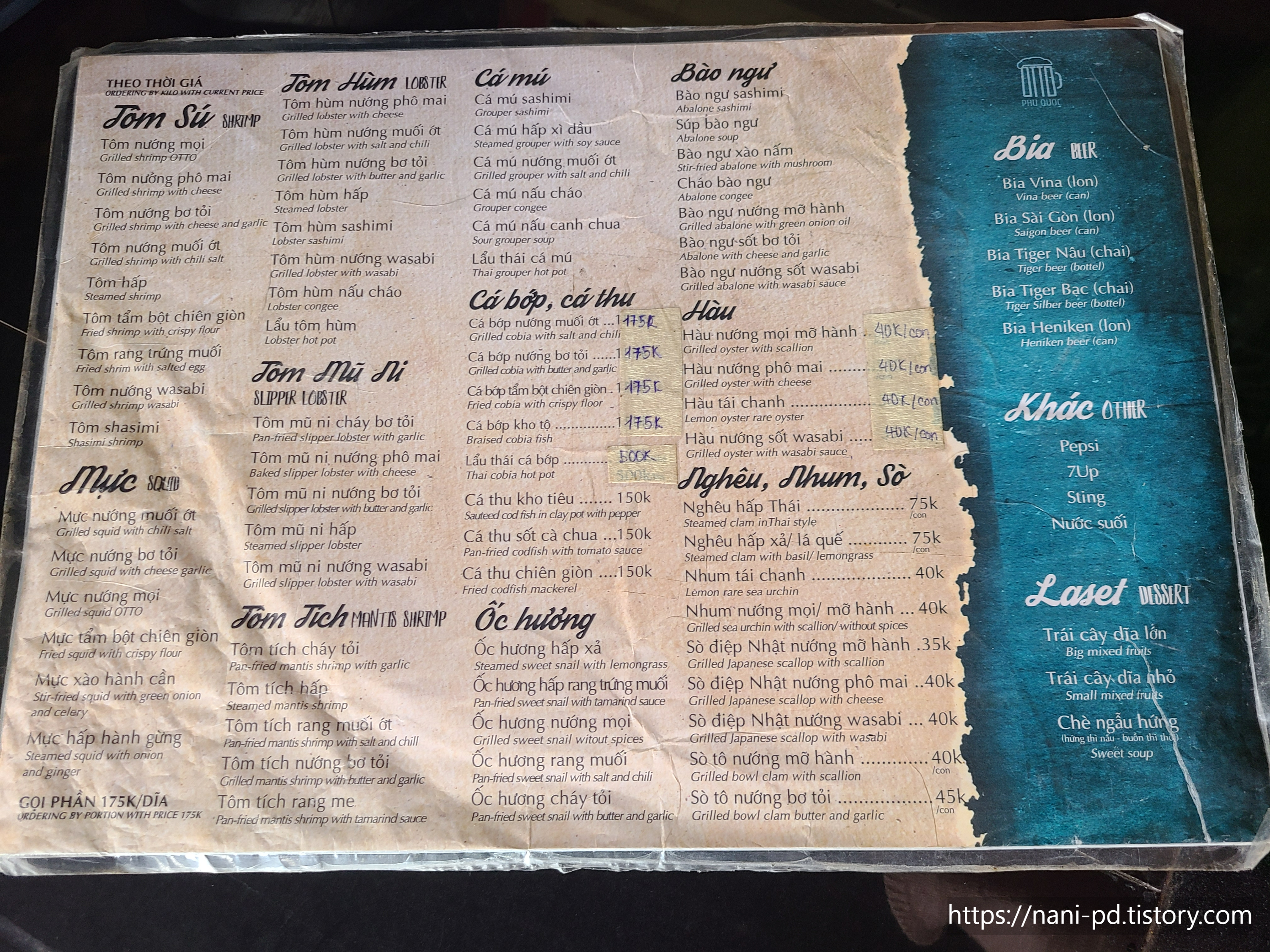 다년간의 베트남 여행으로 이제 어느정도 메뉴판 읽는 수준은 되기 때문에 찬찬히 보며 골라봅니다.