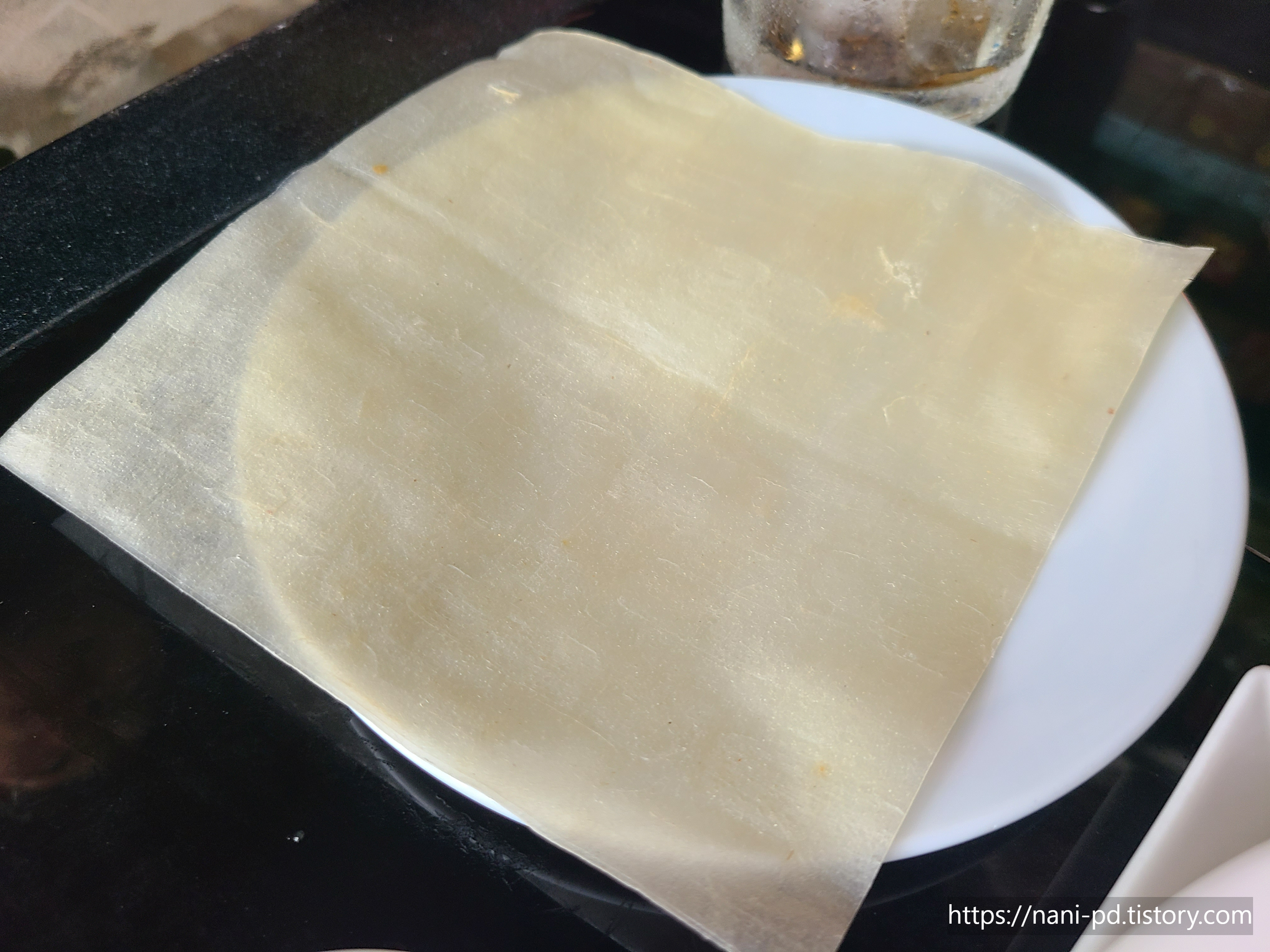 반쎄오를 주문하면 이렇게 라이스페이퍼가 나오는데 여기에 싸서 먹는겁니다.