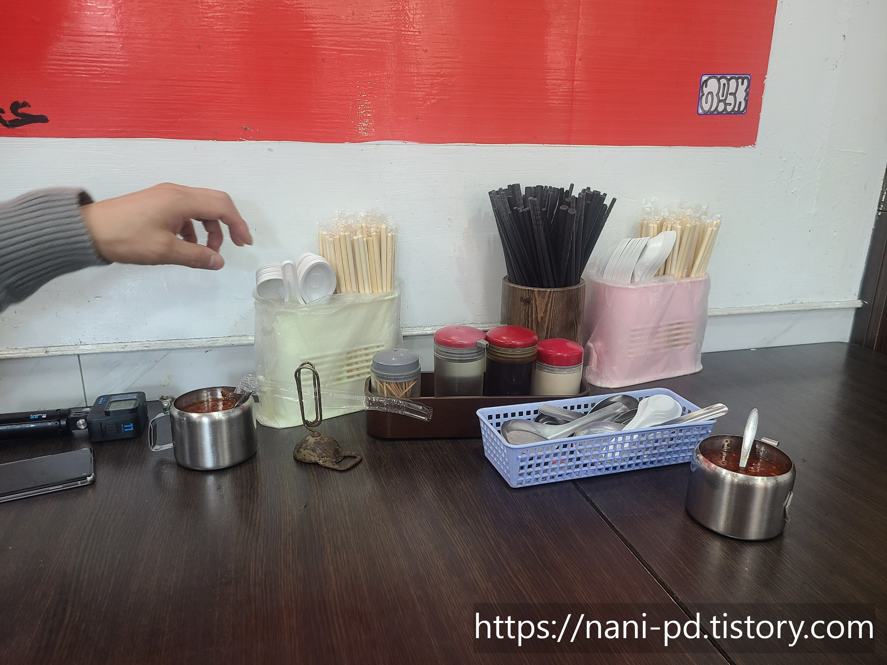 기본적으로 숟가락와 젓가락, 각종 양념통들이 자리마다 비치되어있습니다.