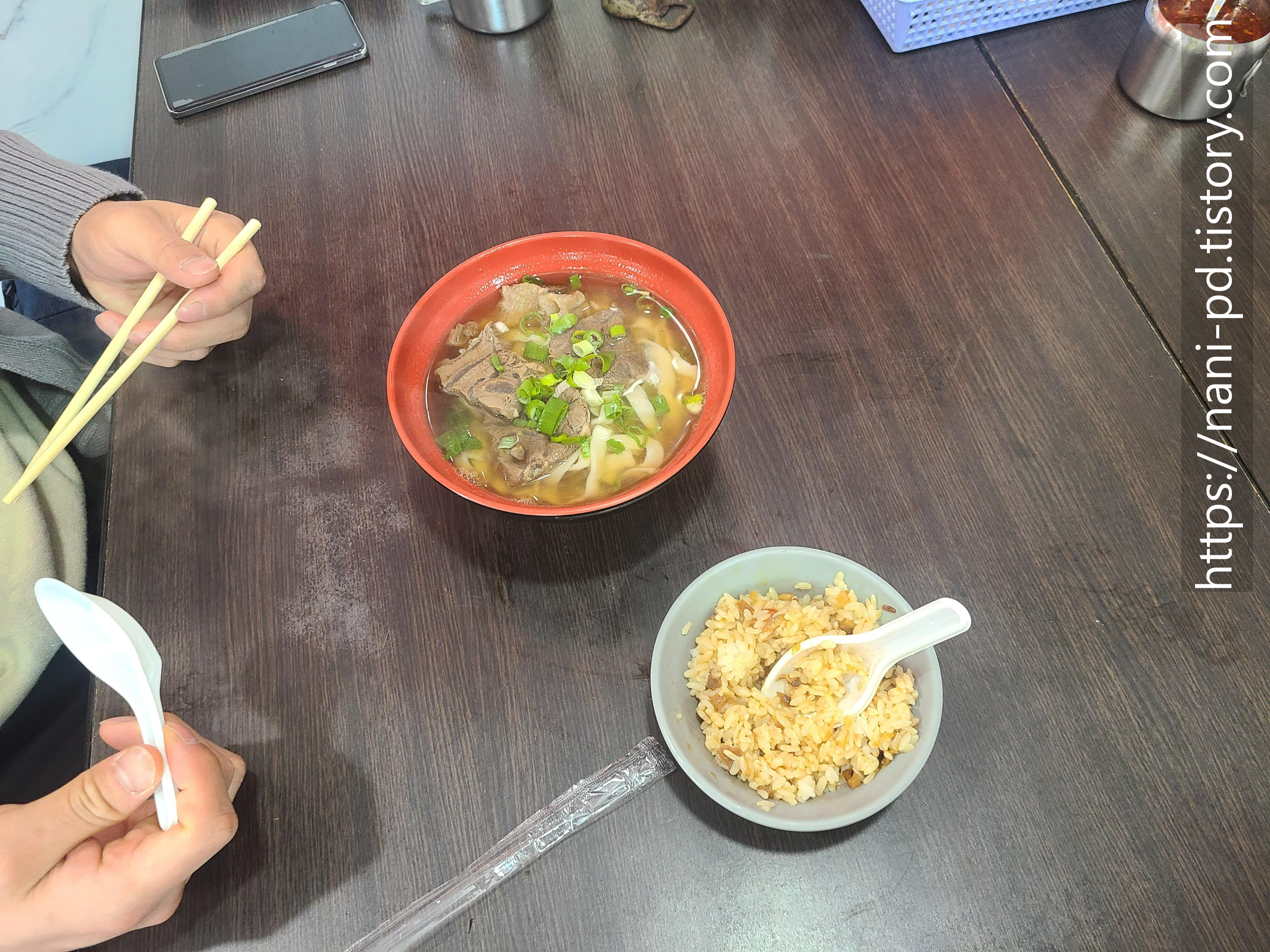 우육면이긴 하지만 무슨 우육면인지 모르는 음식1과 같이 나온 볶음밥 1입니다.